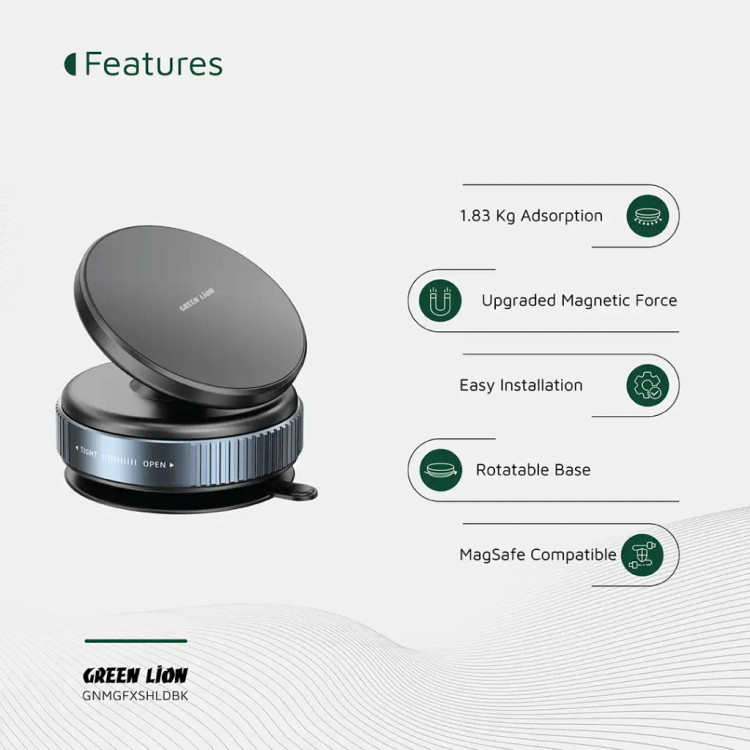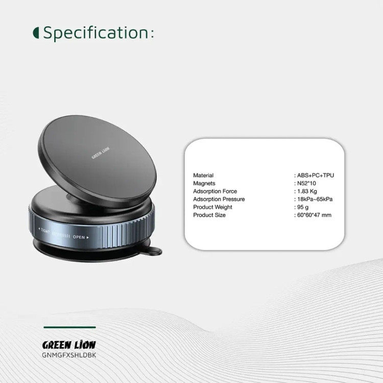 فنجان مکش قوی این هولدر، چسبندگی محکمی ایجاد میکند و فشار جذب آن در بازه 18kPa تا 65kPa قابل تنظیم است تا روی سطوح مختلف پایدار باقی بماند. پایه 360 درجه چرخان به شما امکان میدهد دستگاه خود را در بهترین زاویه برای مشاهده تنظیم کنید. نصب آسان و عملکرد چندمنظوره این نگهدارنده آن را به ابزاری کاربردی برای خودرو، خانه یا دفتر کار تبدیل کرده است. محکم در ساخت و انعطافپذیر در عملکرد، Green Lion Magno Flex دستگاه شما را امن و در دسترس نگه میدارد