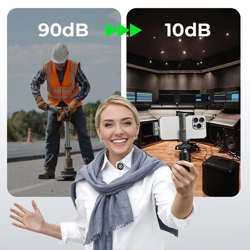 این میکروفون قادر است صدای 48kHz / 24-bit Hi-Fi ضبط کند و با فناوری حذف نویز محیط (ENC) صدایی شفاف و طبیعی ارائه میدهد. همچنین با نسبت سیگنال به نویز بیش از 70dB و حداکثر فشار صوتی 115dB برای ضبط صدا در محیطهای مختلف مناسب است.
