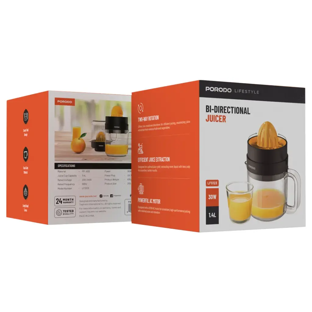 آب مرکباتگیر پورودو لایفاستایل دو جهته دستگاهی کاربردی و کارآمد برای تهیه آبمیوه تازه در خانه است که عملکردی سریع و آسان را ارائه میدهد. این دستگاه از مواد ایمن غذایی شامل PP و ABS ساخته شده و دوام بالا همراه با استفادهای مطمئن را تضمین میکند.